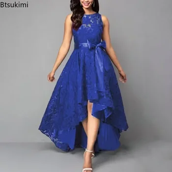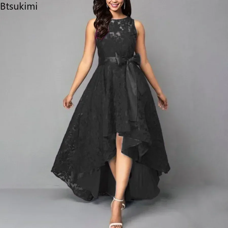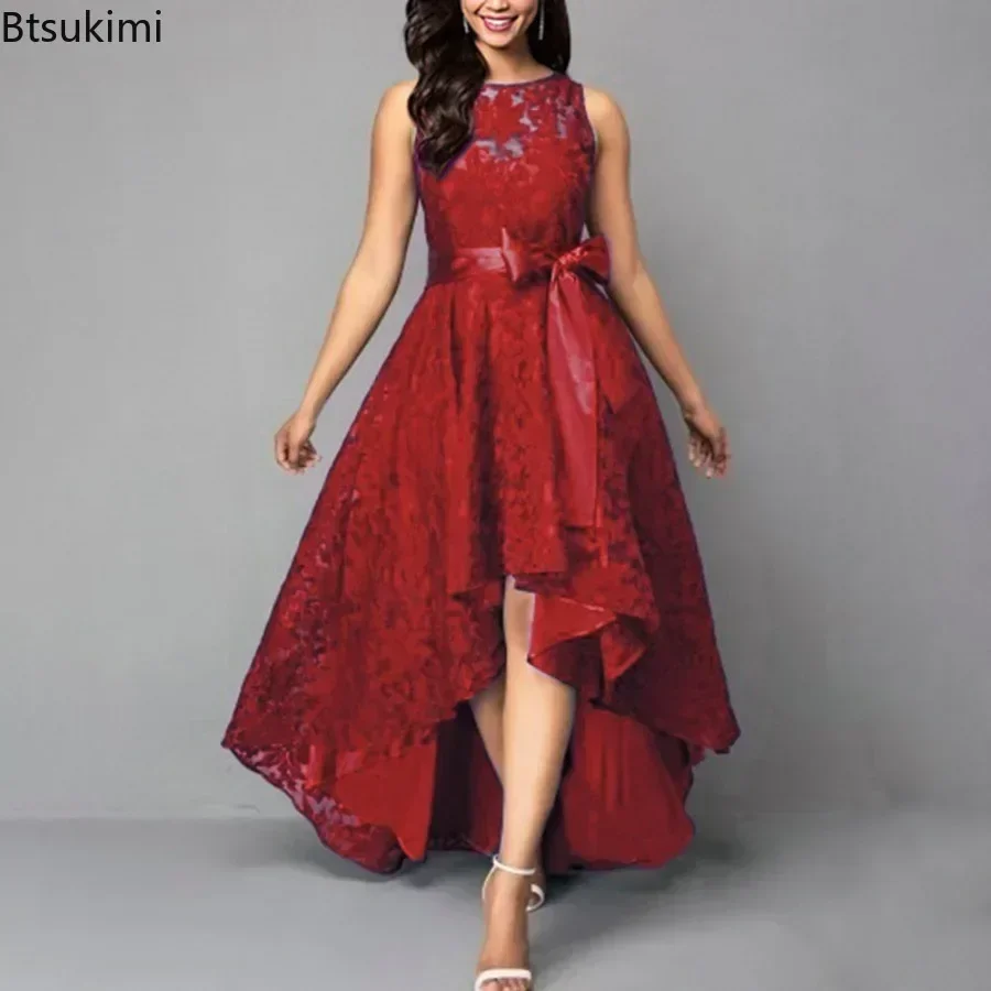 2025 Women’s Wedding Bridesmaid Dress Elegant Lace Evening Sweet Party Dress Plus Size Slim High Waist Bow Maxi Dresses Female