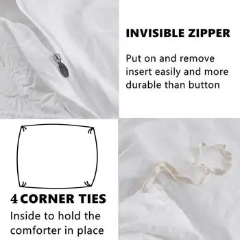 ● Thoughtful Details:This duvet cover set is as practical as it is stylish. Four corner ties keep your duvet, quilt, or comforter securely in place, so there’s no slipping or bunching.The hidden zipper closure provides a seamless finish and makes bed-making quicker and easier compared to traditional button closures.