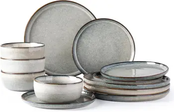 - WHAT’S IN THE BOX: These series 12-piece dinnerware set includes 4Pcs 10.5” Dinner Plates, 4Pcs 8.5” Dessert Plates, 4Pcs 6.” (22 OZ) cereal bowls, making it a great set service for 4.